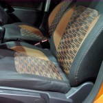 В салоне сохранились те же оранжевые вставки. Но например с рулевого колеса оранжевую вставку заменили на черную. А на новых креслах цветные квадраты заменили на орнаментные рисунки, что смотрится не так «колхозно», как раньше. Да и сами кресла и задний диван сменили форму и стали заметно комфортнее. Водительское кресло получила регулировку по высоте. Дополняет новый интерьер панель приборов с оранжевыми циферблатами и увеличенным монитором бортового компьютера. Модернизации подверглась и центральная консоль, на которой переместились некоторые элементы, магнитола например. Фотографии салона смотрим ниже.